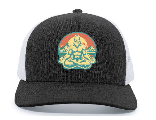 Our popular Meditating Sasquatch patch pops just right on this trucker snapback hat! Now available in several color schemes.